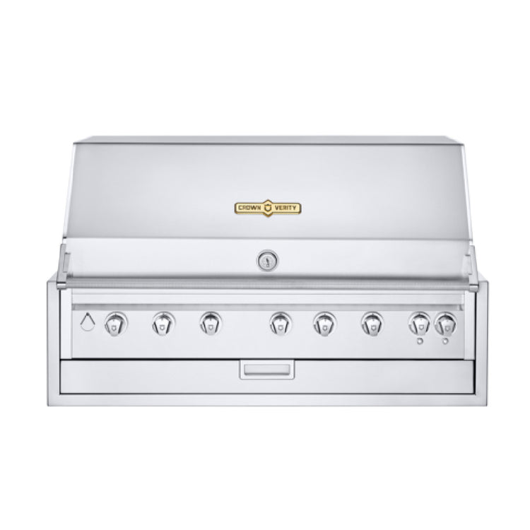 The Crown Verity IBI48-LT Infinite Series 48" Built-In Outdoor Charbroiler Grill distinguishes itself as a high-performance grill ideal for outdoor cooking enthusiasts and professional chefs alike. This robust grill features seven 14,750 BTU stainless steel burners, delivering powerful and consistent heat for precise grilling. Its battery multi-spark ignition system ensures quick and reliable start-ups, enhancing its convenience for frequent use. Constructed entirely of stainless steel, the grill guarantees durability and resistance to weathering, making it a long-lasting addition to any outdoor kitchen. Included with the grill are a bun-rack for added cooking versatility, a heavy-duty custom-fitted cover for protection when not in use, and a regulator for optimal gas control. The grill is further enhanced by a custom light package featuring heat-indicating LED bezels and halogen dome lights, providing excellent visibility during nighttime grilling sessions. This lighting package is specifically designed for the IBI48 model, emphasizing its tailored and seamless integration. The Crown Verity IBI48-LT grill represents an exceptional choice for those seeking a blend of professional-grade cooking capabilities and elegant design in their outdoor culinary space.