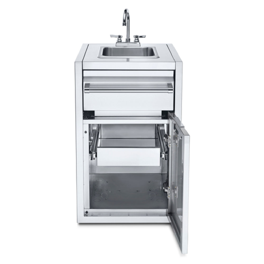 The Crown Verity IBISC-SK-1D Small Built-In Cabinet with Sink & (1) Drawer is a compact and versatile addition to any professional kitchen or outdoor cooking area. This unit integrates a practical sink and a single drawer for efficient storage, meeting the demands of culinary professionals who require space-efficient solutions. The inclusion of a paper towel holder adds convenience, ensuring that cleanup and hygiene maintenance are seamless. Beneath the sink area, a storage cabinet provides additional space, ideal for organizing kitchen essentials and keeping them within easy reach. This built-in cabinet is designed to meet the needs of different segments within the food service industry, from small restaurant kitchens to upscale outdoor grilling setups. Its functionality and design simplify workflow, allowing for a more organized and efficient culinary environment. The Crown Verity IBISC-SK-1D demonstrates a commitment to quality and practicality, making it a valuable asset for chefs and culinary professionals seeking a reliable and integrated solution for their workspace.