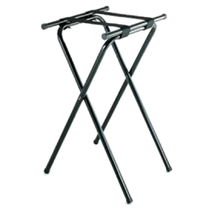 Central Specialties Ltd., 1053BL-1, Deluxe Tray Stand, 19" x 15" top x 31" high, folding, 2-1/4" washable black straps, wide base, rivet-hinge joint, 1" tubular steel frame, non-marking black plastic feet, black finish (Packed By: 1 Each)