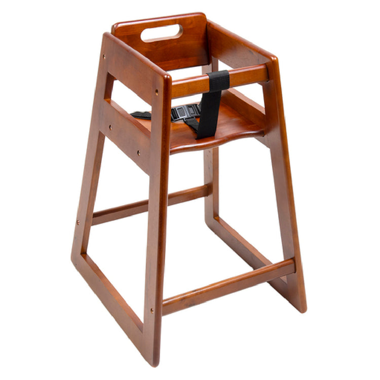 Central Specialties Ltd., 900DK, Youngstar Deluxe High Chair, 16-3/4"W x 19-3/4"D x 27"H, stackable, "A-frame", 1-1/2"W seat belt & crotch strap, scalloped seating, rubber wood, dark, ASTM F404-18 compliant (ships assembled) (Packed By: 1 Each)