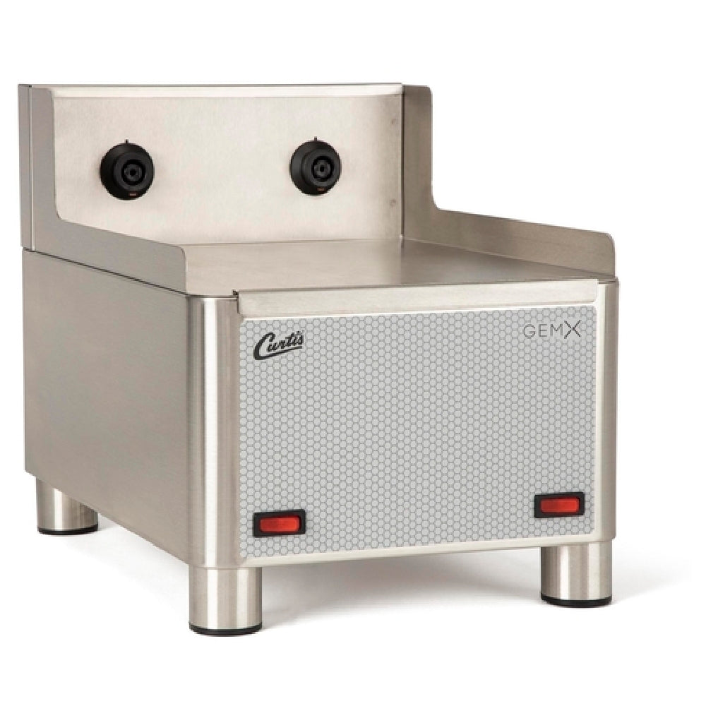 The Curtis GEM5XN Gemini® Coffee Satellite Warmer Stand is an advanced, stainless steel appliance specifically designed to accommodate and warm two GEM3XN dispensers simultaneously. Engineered with Intellifresh® technology, this warmer stand ensures optimal temperature retention for coffee, enhancing beverage quality and customer satisfaction across various service environments. Operating on a 120V power supply, the Curtis GEM5XN is built for efficiency with a Phase 1 electrical phase, drawing 1.20 amps and consuming 142 watts of power. The electrical configuration includes a 2W+G wire setup, ensuring a secure and reliable connection. With compatibility for both 50 and 60 Hertz, this warmer stand is versatile for use in different geographical locations. Certified by UL and NSF, the Curtis GEM5XN meets stringent safety and health standards, making it a reliable choice for professional coffee service operations such as cafes, restaurants, and hospitality venues. Its robust construction and innovative features provide a practical solution for maintaining coffee at the ideal serving temperature, thus supporting high-volume service demands and ensuring a premium experience for coffee enthusiasts.