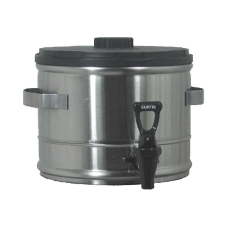 The Curtis TC15S Iced Tea Dispensers 1-1/2 Gallon 9-2/5" Dia. is a versatile dispensing solution designed for commercial beverage service needs. This dispenser, with a capacity of 1-1/2 gallons, is well-suited for establishments ranging from small cafes to large banquet facilities. Its 9-2/5" diameter allows for easy placement on countertops, while the 9-1/8" faucet clearance ensures convenient dispensing into various cup sizes. The dispenser is equipped with a stand and features stackable design elements, enabling efficient storage and space management. Constructed with heavy gauge stainless steel, the Curtis TC15S offers durability and longevity, making it a reliable choice for high-volume use. The sloped tank bottom allows for complete beverage dispensing, minimizing waste, and the front drain simplifies cleaning and maintenance procedures. With welded handles, the dispenser is easy to transport and maneuver. The plastic stackable lid enhances usability by keeping contents secure and fresh. This product is NSF certified, ensuring it meets stringent public health and safety standards, which is crucial for food service operators. The Curtis TC15S Iced Tea Dispenser is engineered for efficiency and durability, making it a valuable asset for any establishment seeking to provide quality beverage service.