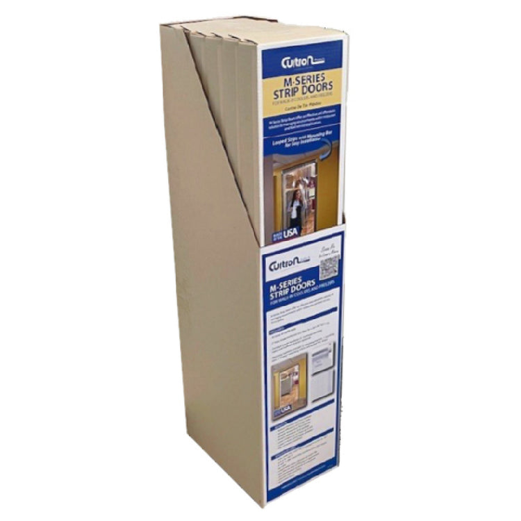 Curtron Products, M108-PR-4080-DEALER6PACK, Dealer Display Box Combo, (1) Free Standing Cardboard Display with (6) M-Series Strip Door Kits for Walk-In Coolers & Freezers, 40” wide x 80” high (fits openings up to 36” wide x 78” high), 8" wide x .080" thick polar-reinforced clear PVC looped-top strips (rated for -20° to 140°F), aluminum bar, and universal mounting brackets.