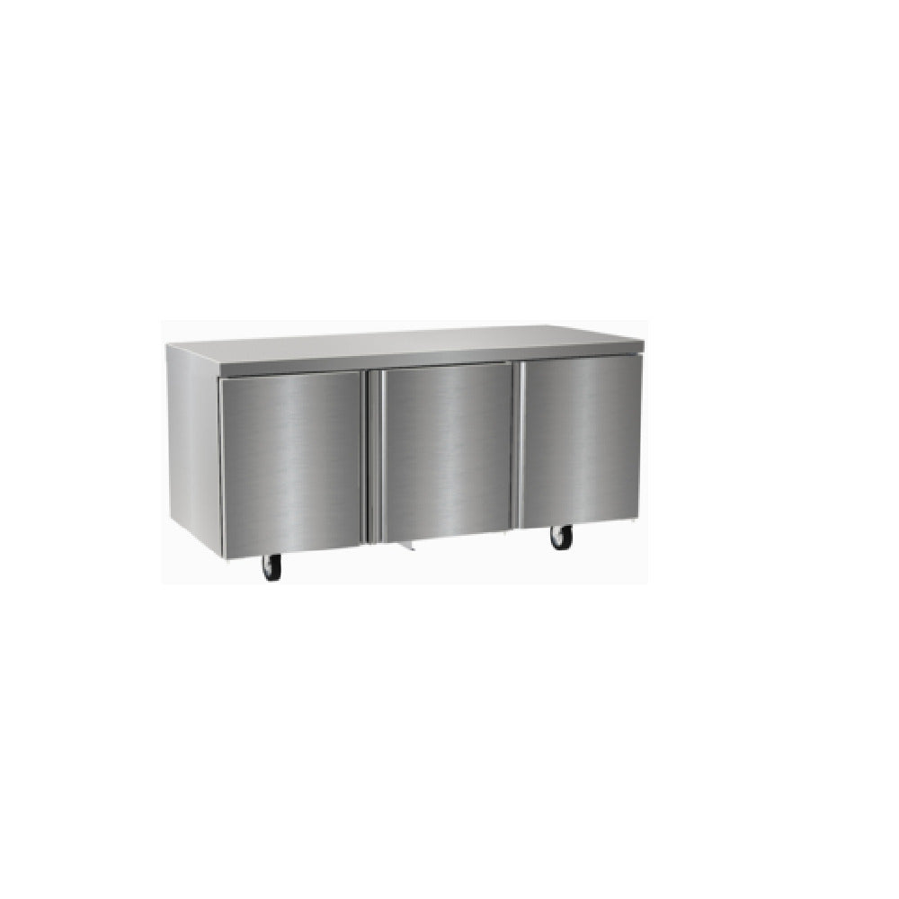 The Delfield 4472NP Refrigerated Worktop/Undercounter is a versatile and functional piece of equipment tailored for professional kitchen environments that require high performance in a compact footprint. This three-section unit spans a width of 72 inches, providing ample refrigerated storage space within a streamlined design. It features three doors, each granting access to individual compartments, ensuring organized storage and easy accessibility to ingredients or supplies. Ideal for various segments of the foodservice industry, including restaurants, cafes, and catering services, the Delfield 4472NP seamlessly integrates refrigerated storage with workspace utility, optimizing kitchen efficiency. The unit's undercounter design allows it to fit neatly beneath existing countertops, maximizing valuable kitchen space without sacrificing refrigeration capacity. Its robust construction is designed to withstand the demands of busy commercial kitchens, offering a reliable solution for maintaining food safety and freshness. Its engineered design prioritizes energy efficiency and consistent temperature control, essential for preserving the quality of stored items. The Delfield 4472NP's thoughtful configuration and reliable performance make it an indispensable asset for culinary professionals seeking to enhance their kitchen operations with reliable, space-efficient refrigeration.