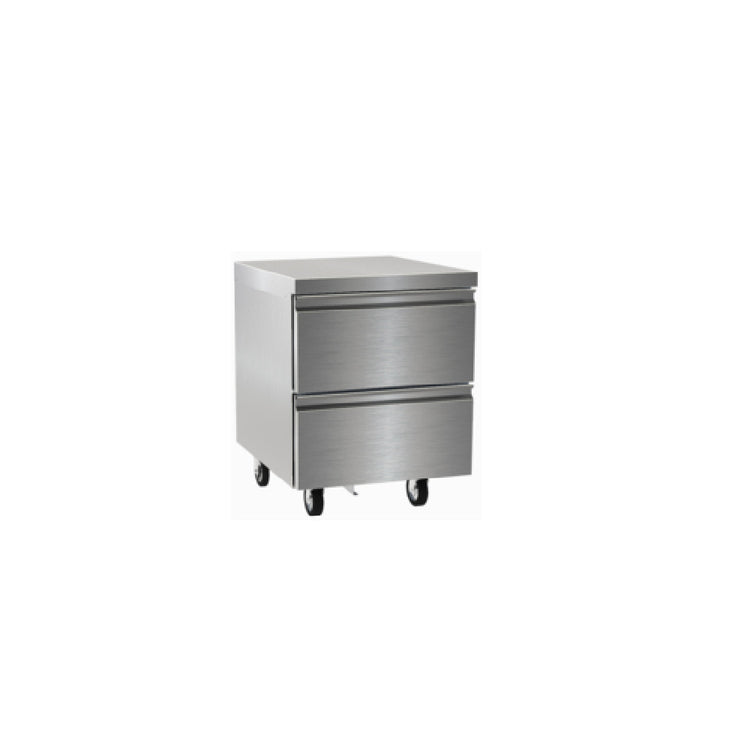 The Delfield D4427NP Refrigerated Worktop/Undercounter is a compact yet efficient refrigeration solution, designed with a single-section layout and a 27-inch width, making it suitable for small to medium-sized commercial kitchens. This model is equipped with two drawers, offering versatile storage options that are ideal for organizing ingredients and maintaining accessibility. The refrigerated worktop not only provides a durable surface for food preparation but also ensures that ingredients are kept at optimal temperatures, enhancing food safety and quality. The undercounter design maximizes space efficiency, making it a perfect choice for establishments with limited kitchen space. Its robust construction and functional design make it a reliable asset for restaurants, cafeterias, and catering businesses. The Delfield D4427NP’s streamlined design, combined with its practical storage capabilities, caters to the diverse needs of various foodservice operations, providing a seamless blend of functionality and reliability. Whether for use in a bustling restaurant or a compact deli, this refrigerated worktop/undercounter unit delivers consistent performance and supports efficient kitchen workflows. Its thoughtful design ensures it can withstand the demands of a busy kitchen environment, making it an indispensable tool for chefs and kitchen staff aiming to maintain high standards of culinary excellence.