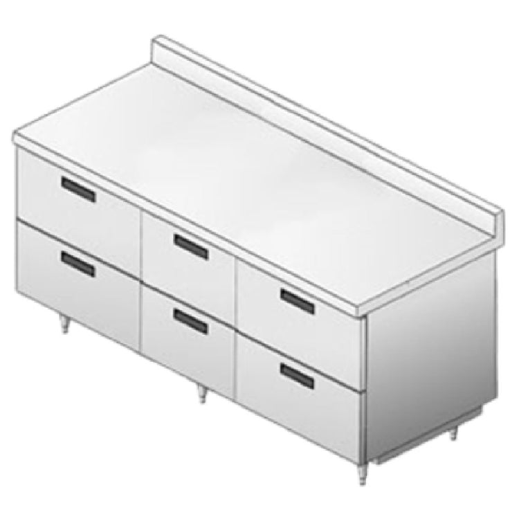 The Delfield F16DD73 Utility Stand Drawer Base - 73" Long is an exceptional storage solution designed for commercial kitchens and food service establishments. Measuring 73" in length and 31-1/2" in depth, this utility stand provides ample space for organizing kitchen essentials. It features a total of six drawers, including four 27" drawers and two 19" drawers, allowing for versatile storage options to accommodate various utensils and ingredients. The stainless steel top ensures a durable and hygienic workspace, ideal for busy kitchen environments. Although the ends and back are unfinished, this stand offers a robust construction that meets professional standards. Certified by cUL, UL, and NSF, the Delfield F16DD73 guarantees compliance with safety and sanitation regulations, making it a reliable addition to any culinary setting. Its thoughtful design and emphasis on quality are perfect for chefs and kitchen staff who require efficient and organized storage solutions to enhance productivity in high-demand environments.