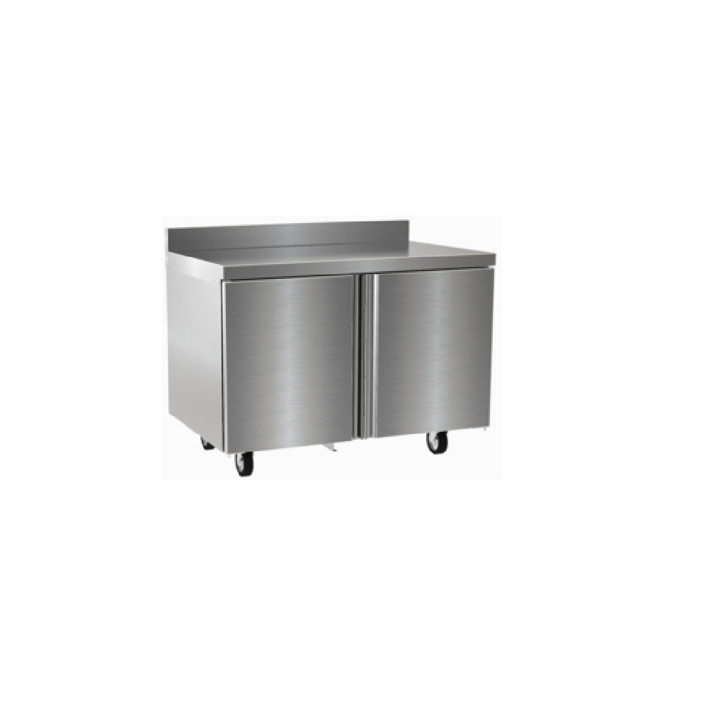 The Delfield ST4448NP Refrigerated Worktop is a premium two-section refrigeration solution, measuring 48 inches in width, catering to the stringent and diverse demands of the foodservice industry. It features two secure doors, providing ample refrigerated storage space for perishable items, which is particularly beneficial for kitchens with limited space or those requiring efficient layout options. The 4-inch backsplash is a thoughtful addition, effectively preventing spills and ensuring easy cleaning, which is crucial in maintaining hygiene standards in professional culinary environments. This refrigerated worktop is engineered to support seamless food preparation while offering reliable refrigeration, making it indispensable for restaurants, bakeries, and catering services. Its design emphasizes both functionality and durability, aligning with the needs of chefs and kitchen operators who prioritize efficiency and organization. The Delfield ST4448NP is a testament to quality craftsmanship, ensuring consistent performance and long-lasting service, which is essential in fast-paced, high-demand foodservice settings. Its compact yet robust design makes it an ideal choice for optimizing kitchen space without compromising on storage or cooling capabilities, thereby enhancing workflow and productivity within various food industry segments.