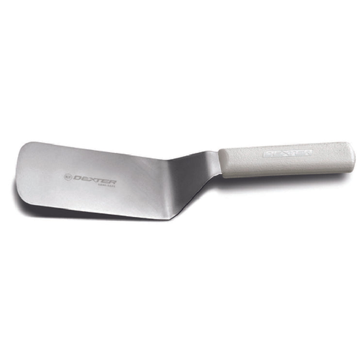 Dexter Russell, 16383, Sani-Safe® (S286-6RC) Hamburger Turner, 6" x 3", round cornered, solid, stiff, offset, stainless steel blade, textured, polypropylene white handle, NSF Certified