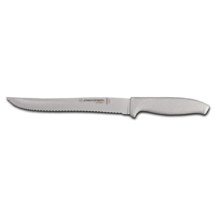 Dexter Russell, 24253, SofGrip™ (SG158SC-PCP) Utility Slicer, 8", scalloped edge, stain-free, high-carbon steel, non-slip, white, soft rubber grip handle, Perfect Cutlery Packaging, NSF Certified, Made in USA