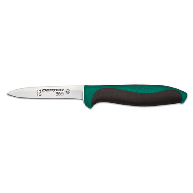 Dexter Russell, 36000G, Dexter® 360™ (S360-3½G-PCP) Paring Knife, 3½", spear point, straight edge, stamped, DEXSTEEL™ stain free, high carbon steel, polypropylene/Santoprene® handle, green, NSF