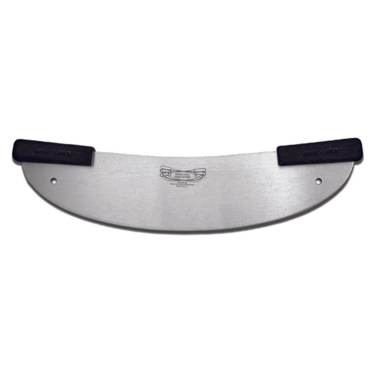 The Dexter Russell PR180-20 Sani-Safe® (18053) "Rock 'N Roll" Pizza Rocker is a specialized tool designed for precision and efficiency in the food service industry. With a substantial 20-inch blade crafted from high-carbon steel, this pizza rocker promises stain-free performance, ensuring long-lasting durability and a pristine appearance even after extensive use. The smooth, black polypropylene handle grips offer a secure and comfortable hold, enhancing user control and safety during operation. Proudly made in the USA, this pizza rocker embodies quality craftsmanship, making it a reliable companion for professional chefs and pizza enthusiasts alike. Its unique design caters to a diverse range of markets; from bustling pizzerias seeking efficient slicing solutions to home cooks desiring professional-grade tools. The functional and hygienic attributes of the Sani-Safe® line are evident in this product, addressing the demands for both performance and cleanliness. The Dexter Russell PR180-20 "Rock 'N Roll" Pizza Rocker stands out as a valuable asset in any food preparation setting, blending technical excellence with practical utility.