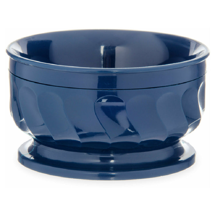 The Dinex DX330050 Pedestal Base Bowl 9 oz. Insulated is an expertly crafted serving solution designed to maintain the temperature of its contents, making it ideal for the healthcare and hospitality industries where food quality and presentation are paramount. With a 9 oz. capacity, this bowl is perfectly sized for individual servings, ensuring portion control and reducing waste. The insulation feature of this bowl helps maintain the temperature of hot or cold foods, enhancing the dining experience for patients or guests. The pedestal base design not only adds a touch of elegance but also provides stability, minimizing the risk of spills. Part of the Turnbury® collection, this bowl is available in a sophisticated Midnight blue color, adding a classic touch to any table setting. Each case contains 48 bowls, offering an efficient and economical choice for large-scale operations. The Dinex DX330050 is a reliable choice for food service environments where maintaining proper food temperatures and presentation are crucial. Its sturdy construction ensures durability, while its stylish design complements various dining settings, making it a versatile addition to any institutional dining service.