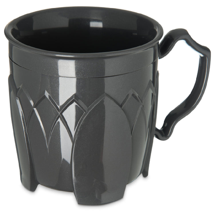 The Dinex DX500044 Fenwick Mug is an 8 oz. insulated beverage container designed with both functionality and style in mind. Featuring a double wall construction, this mug utilizes ozone-safe urethane foam insulation to maintain the temperature of its contents, making it ideal for hot or cold drinks. The mug's sculpture design adds a touch of elegance, while its graphite grey color ensures it seamlessly fits into any dining setting. Made from durable polypropylene, the Fenwick Mug is not only resilient but also dishwasher safe, providing convenience for both personal and commercial use. Being BPA free, it offers a safe drinking experience, aligning with health-conscious consumer priorities. Proudly made in the USA, this mug is crafted with quality and reliability at its core, suitable for a wide range of markets including hospitality, healthcare, and home dining. With a packaging of 48 per case, it is an excellent choice for bulk purchasing by institutions or businesses looking to provide a consistent and trustworthy product to their clients or guests. The Dinex DX500044 Fenwick Mug offers a unique blend of practicality and aesthetic appeal, making it a standout choice for various industry needs.