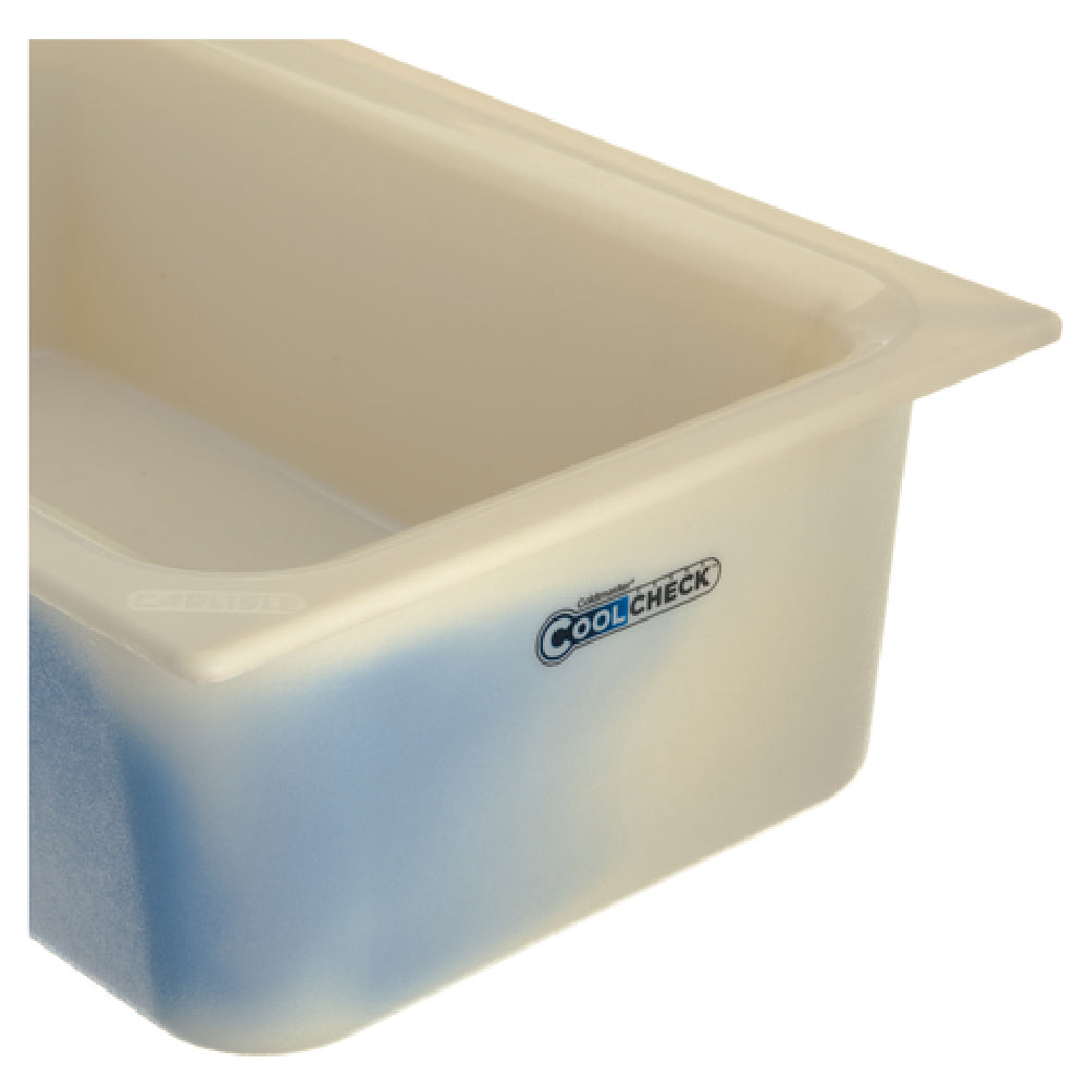 The Dinex DXCM1100C1402 Coldmaster® Coolcheck™ Food Pan is a versatile 1/1 size pan with a substantial 15 qt. capacity and a depth of 6 inches. This innovative food pan is an excellent solution for foodservice operations that require reliable temperature control. Its color-changing technology provides a clear visual indicator of temperature, enhancing food safety and quality assurance. The food pan is designed to hold its charge for an impressive 6-8 hours, reducing the need for frequent replacements and contributing to operational efficiency in busy kitchens. Constructed from high-impact ABS plastic, this durable pan withstands the demands of a commercial environment. The white and blue color scheme adds a professional touch to any culinary setting. Importantly, it is dishwasher safe, ensuring convenient and thorough cleaning. Additionally, the Dinex Coldmaster® Coolcheck™ Food Pan is FDA approved, meeting strict regulatory standards, and is NSF certified, indicating compliance with public health and safety guidelines. This product is indispensable for catering services, buffets, and any foodservice establishment seeking to maintain optimal food temperatures while ensuring compliance with industry standards. A minimum order of one unit is required to enjoy the benefits of this reliable and innovative food storage solution.