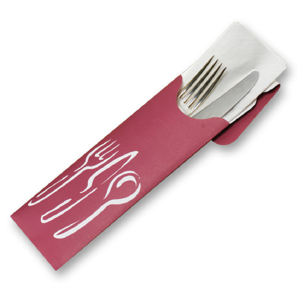 The Dinex DXCTCAD80061 Cutlery Caddy Paper Sleeve With Flap Pre-loaded With 2-ply 16" x 16" Napkin is a thoughtfully designed product that serves a dual purpose of convenience and hygiene across various segments of the food service industry. Each caddy, constructed from paper with an integrated flap, is pre-loaded with a 2-ply napkin measuring 16" x 16", ensuring ready-to-use efficiency for both staff and patrons. The caddy is versatile, allowing you to insert either stainless steel or plastic utensils, making it suitable for diverse dining settings from casual to upscale environments. Offered in a Bon Appetit cranberry color, this cutlery caddy adds a touch of class to the dining experience and is perfect for catering events, restaurants, or cafeterias looking to streamline cutlery management while maintaining a polished presentation. Sold in packs of 600, it supports high-volume operations effectively, aligning with Dinex’s commitment to providing practical, stylish solutions in the food service sector. This product delivers both aesthetic appeal and functional utility, underscoring its value proposition as an essential item for enhancing dining efficiency while ensuring environmental responsibility through its paper construction.