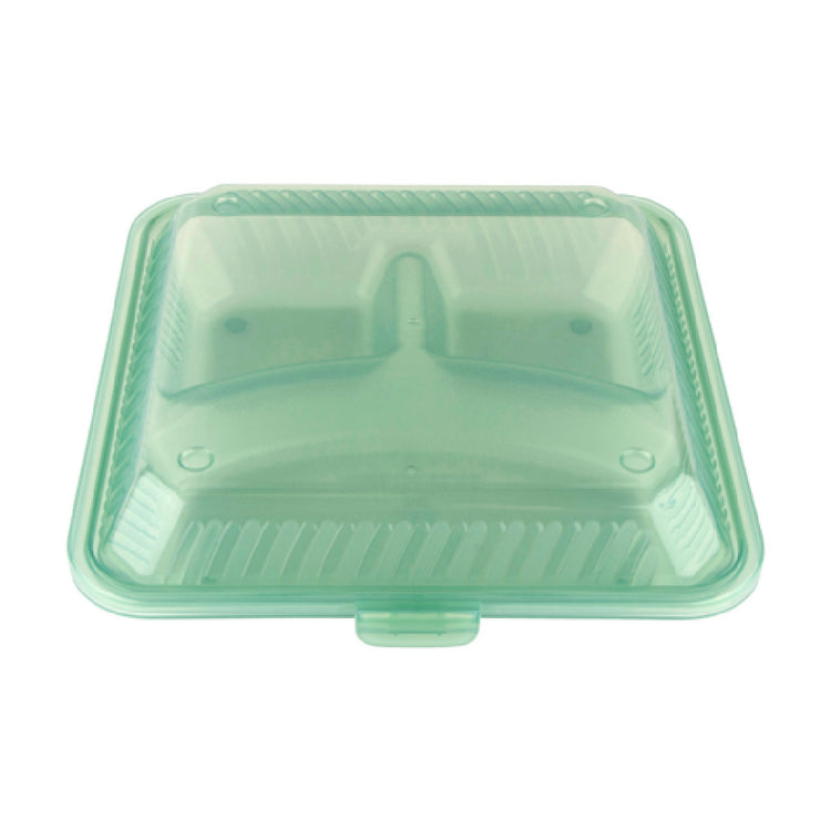 Dinex, DXEC-12-1-JA, Reuseable Container, 9"L x 9"W x 2-1/2"H, square, 3-compartment, polypropylene, jade (12 each per case)