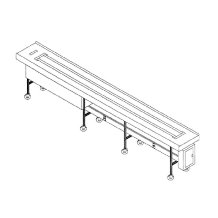 Dinex DXIESB10 Tray Make-Up Conveyor is designed for efficiency and reliability in food service operations. This 10-foot section conveyor is equipped with dual 1/2" diameter urethane band belts that ensure smooth and consistent transport of trays. The variable speed feature allows for customization to suit different operational needs, enhancing productivity in high-demand settings. The "Air Glide" slider pan technology facilitates seamless movement of trays, reducing friction and wear. A pan limit switch is included for added safety, automatically halting operations if any irregularities are detected. The conveyor is built for dry operation, ensuring minimal maintenance and a cleaner environment. Its stainless steel all welded angle and channel frame offers durable and robust construction, ideal for stationary setups. For ease of cleaning, a removable crumb-collector pan is integrated, ensuring hygienic conditions in compliance with food safety standards. FDA and NSF approvals further underscore its suitability for food service environments, providing assurance of quality and safety. The Dinex DXIESB10 is an excellent choice for institutional kitchens, catering services, and other food preparation areas, where efficiency and reliability are paramount.