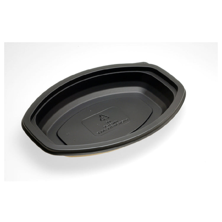 The Dinex DXMW912PBLK Proex Disposable Casserole Container is a versatile and practical solution for food service operations requiring a reliable disposable option. With a capacity of 12 oz., this container is designed for individual-sized servings, making it ideal for catering, hospital meal services, or quick-service restaurants where portion control is key. Its dimensions, 8 inches by 5-1/2 inches, with a depth of 1-1/5 inches, allow it to accommodate a variety of dishes from casseroles to desserts. The oval shape adds a touch of elegance to food presentation while being functional for space utilization. Made from polypropylene, these containers are microwaveable, allowing for convenient reheating without the need for transferring food to a separate dish. The sleek black color provides a professional aesthetic that can complement any catering setup or food display. Sold in cases of 250, the Dinex DXMW912PBLK is perfect for large-scale operations that require efficiency and reliability in their disposable products. Its combination of size, material, and design makes it a valuable asset for any food service provider looking to enhance their meal presentation while maintaining operational efficiency.