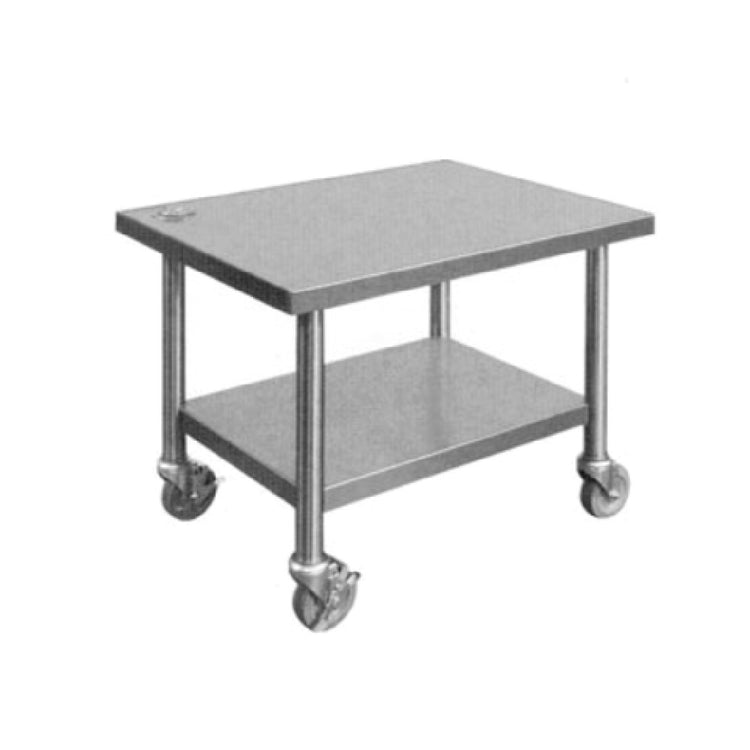 Dinex DXP1212329TSS Stand Equipment For Bench-type Mixer is an essential accessory for those utilizing bench-type mixers in various industrial settings. This stand features an open base design with an undershelf, providing convenient storage space for additional equipment or ingredients, enhancing operational efficiency. Constructed entirely from stainless steel, the stand boasts a 14-gauge stainless steel top with non-spill edges, ensuring durability and a clean working environment by preventing messes during mixing operations. The inclusion of 4-inch casters, two of which are equipped with brakes, offers mobility and stability, allowing for easy repositioning and secure placement during use. The Dinex DXP1212329TSS is designed to cater to the specific needs of food service and production facilities by delivering a robust and adaptable solution that supports heavy-duty use. Its stainless steel construction not only ensures longevity but also facilitates effortless cleaning and maintenance, maintaining high hygiene standards. Ideal for bakeries, restaurants, and other culinary establishments, this stand complements the functionality of bench-type mixers, making it a valuable addition to any professional kitchen setup.