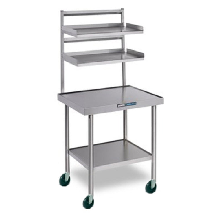 The Dinex DXPICTABLEMSS Mini Starter WorkStation is a compact yet robust solution tailored for diverse industrial needs within the culinary and food service sectors. Measuring 30"W x 24"D, this workstation is engineered for durability and efficiency. It features a 14-gauge, 304 stainless steel top with a full marine edge, providing a hygienic and easy-to-clean surface. The structure is reinforced with under brace hat channels, enhancing its stability and strength. For versatile storage and accessibility, the workstation includes two cantilever overshelves and an open undershelf constructed from 16-gauge, 304 stainless steel. Its fully welded 16-gauge, 304 stainless steel legs ensure lasting durability, while the 4" swivel polyurethane casters, two of which have brakes, offer effortless mobility and secure placement. Finished with a No. 4 polish, the workstation not only ensures practicality but also a sleek appearance. Its compliance with CSA standards underscores its quality and suitability for professional environments. Ideal for kitchens with limited space, the Dinex DXPICTABLEMSS Mini Starter WorkStation provides a functional and reliable workspace for food preparation and service, meeting the demanding needs of chefs and food service professionals alike.