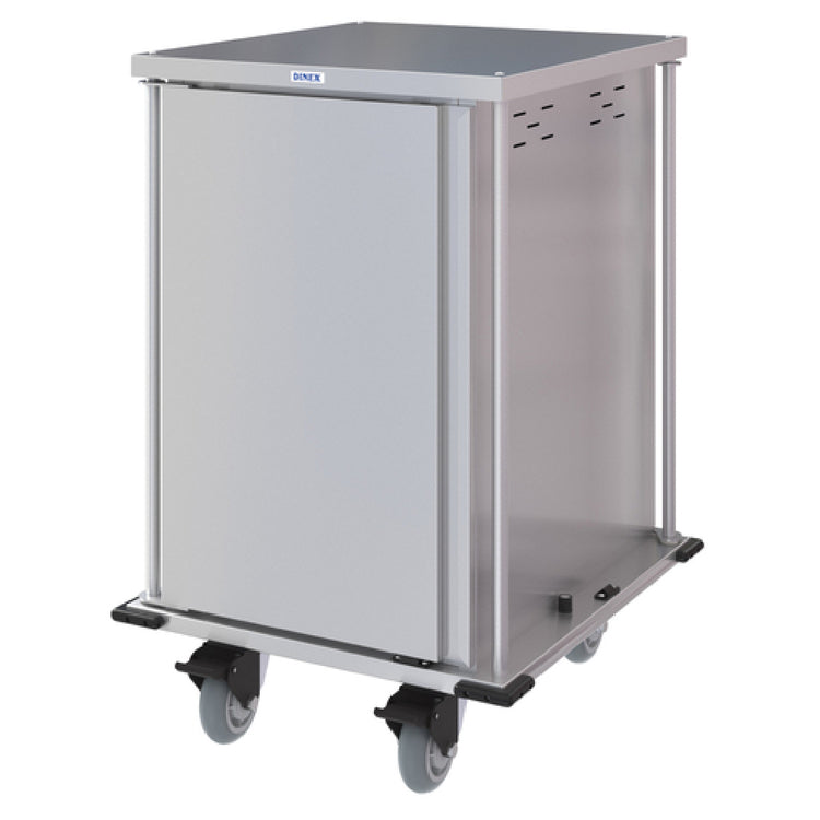 Dinex, DXPTQC2T1DPT14, TQ Compact Meal Delivery Cart, pass thru, (1) door, 1-compartment, 46-2/3"H, enclosed, (14) tray capacity, designed to hold multiple tray sizes (12" x 19", 12" x 20", 14" x 18", 15" x 20" & DXRST152003), 4-3/4" tray height spacing, two trays per slide, vertical push handles, vented side panels, gravity locking door with door stop, corner bumpers, (4) 6" Performa casters (2 rigid, 2 swivel with Tech lock brakes) with noise suppression bearing covers, stainless steel construction, NSF, Made in USA