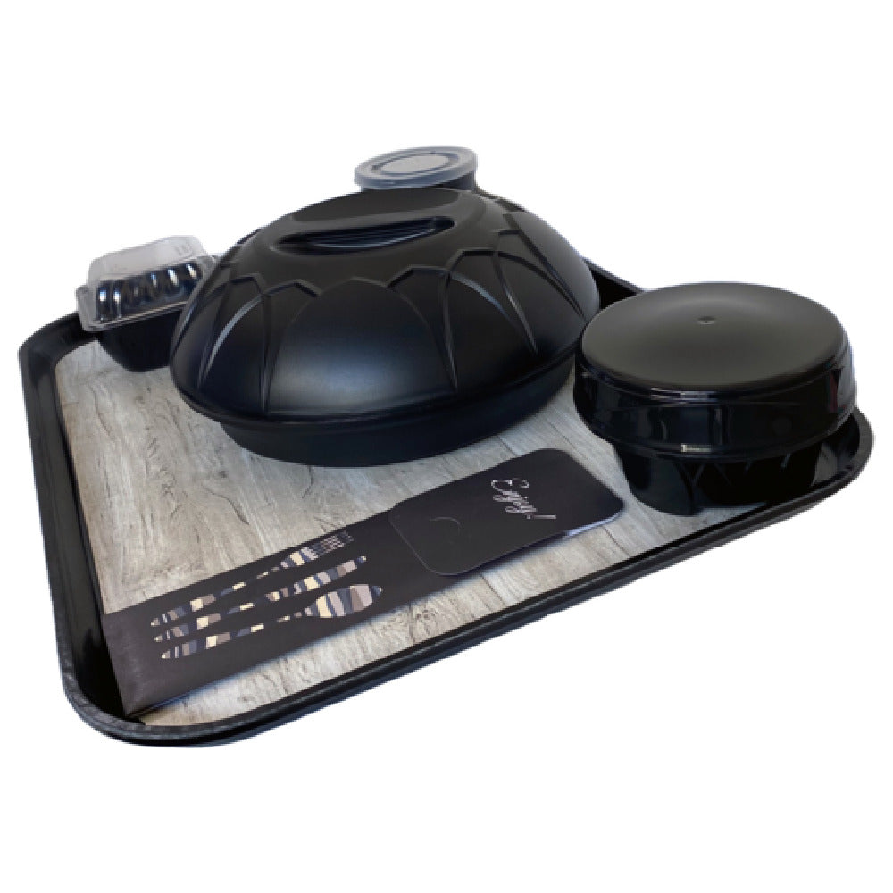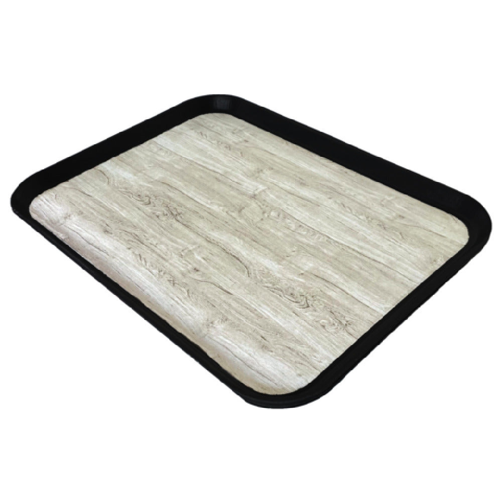 The Dinex DXSMC1418NSW03 Glasteel™ Tray 14" X 18" is a versatile and durable serving solution designed for various segments within the food service industry. Measuring 14 inches by 18 inches, this tray features a molded-in non-skid surface that ensures stability and reduces the risk of spills during transport, making it ideal for high-traffic environments such as hospitals, cafeterias, and restaurants. Constructed from stain, scratch, and odor-resistant fiberglass, it offers long-lasting performance and easy maintenance, maintaining its professional appearance even with frequent use. The tray's black color with a woodgrain finish adds an elegant touch to its functionality. Supplied in cases of 12, it is suitable for large-scale operations seeking practical and efficient service solutions. The Dinex Glasteel™ Tray combines aesthetic appeal and practical design, meeting the demands of both aesthetics and utility in food service applications.