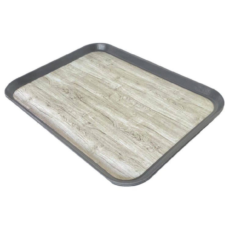 Dinex DXSMC1418NSW44 Glasteel™ Tray 14" X 18" Molded-in Non-skid Surface is a meticulously crafted solution for food service environments demanding durability and safety. Measuring 14 inches by 18 inches, this tray is ideal for accommodating various food items while ensuring stability with its molded-in non-skid surface. Constructed from fiberglass, the tray is designed to resist stains, scratches, and odors, ensuring longevity and ease of maintenance, which is crucial in the fast-paced food industry. The graphite color combined with a woodgrain finish adds an aesthetic appeal that complements any dining setting. Each case contains 12 trays, making it a practical option for restaurants, hospitals, and other institutions that require reliable serving solutions. The Dinex DXSMC1418NSW44 tray is particularly valuable for settings where spill reduction and hygiene are paramount, as its non-skid surface minimizes the risk of accidents. This tray represents a perfect blend of functionality and style, offering a robust addition to professional serving ware collections. By incorporating innovative materials and thoughtful design, it stands out in various market segments, from healthcare facilities to high-end eateries, delivering consistent performance and enhancing operational efficiency.