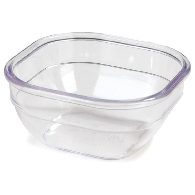 Dinex DXSQD1007 Bowl 10 Oz. 4"W x 4"D x 1-3/4"H is a versatile and efficient solution for various dining and catering needs, expertly crafted to meet the demands of both commercial and residential settings. This square bowl, measuring 4 inches in width and depth, with a height of 1-3/4 inches, provides optimal serving capacity while maintaining a compact footprint. Manufactured from SAN (styrene acrylonitrile), the clear construction offers both durability and a sleek aesthetic, ensuring it withstands frequent use while allowing the contents to be visible for enhanced presentation. Certified by NSF, it meets rigorous public health and safety standards, making it a reliable choice for food service environments. The Dinex DXSQD1007 Bowl comes in a case of 48, providing ample supply for large events or institutional use without frequent reordering. Its design caters to diverse market segments, including healthcare facilities, catering services, and hospitality venues, offering a practical yet sophisticated option for serving soups, salads, desserts, and more. The combination of its size, material, and certification underscores its utility in high-volume settings, where durability, hygiene, and presentation are paramount.