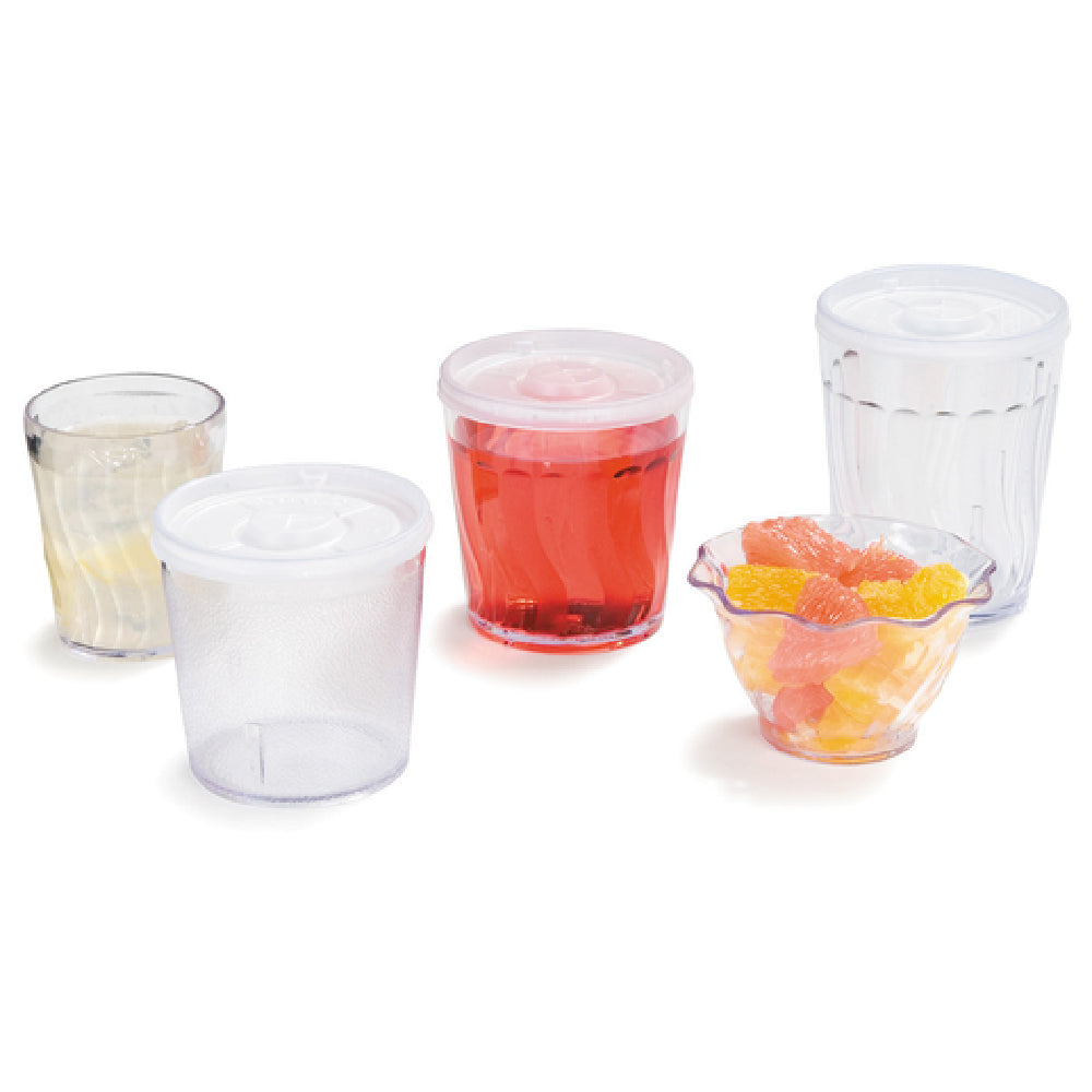 The Dinex DXSWC1207 Tulip Bowl - 13 oz. 5-1/2" dia. x 2-1/4"H is a versatile and durable dishware option for various dining settings, boasting essential features for both functionality and safety. This clear Tulip Bowl, with its unique swirl design, is crafted from SAN (styrene acrylonitrile), ensuring a robust and reliable construction suited for frequent use. Its 13-ounce capacity and dimensions of 5-1/2 inches in diameter and 2-1/4 inches in height make it an ideal choice for serving portions of soups, salads, or desserts, meeting diverse culinary needs. The Tulip Bowl is designed for convenience, being dishwasher safe, which simplifies the cleaning process in busy food service environments. Additionally, it is BPA-free, addressing health concerns and making it a safe option for serving food. Each case contains 48 bowls, offering an efficient solution for restaurants, cafeterias, or catering services seeking to maintain a consistent supply of quality dishware. The Dinex DXSWC1207 Tulip Bowl is particularly valuable for establishments prioritizing both aesthetic appeal and practical functionality in their tableware, bridging the gap between elegance and everyday usability in the food service industry.