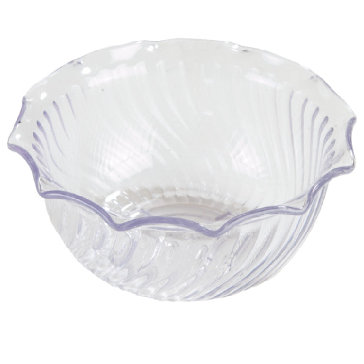 The Dinex DXSWC807 Tulip Bowl embodies a perfect blend of functionality and design, catering to diverse segments within the food service industry. With a capacity of 8 oz., it is ideally sized for individual servings, making it a versatile choice for caterers and hospitality professionals. The bowl measures 4-5/8 inches in diameter and stands 2-1/8 inches tall, offering a compact yet elegant serving solution. Its swirl design enhances its aesthetic appeal, adding a touch of sophistication to any table setting. Crafted from SAN, a high-quality plastic known for its durability, the Tulip Bowl is both BPA free and dishwasher safe, ensuring user safety and convenience. The clear construction of the bowl provides a clean and modern look while allowing the vibrant colors of its contents to stand out. Designed to meet rigorous safety and quality standards, it carries the NSF certification, underscoring its reliability and suitability for professional use. Packaged with 48 bowls per case, the Dinex DXSWC807 is an economical option for businesses requiring bulk quantities, such as restaurants, hospitals, and cafeterias, providing a practical yet stylish solution for serving a variety of dishes.