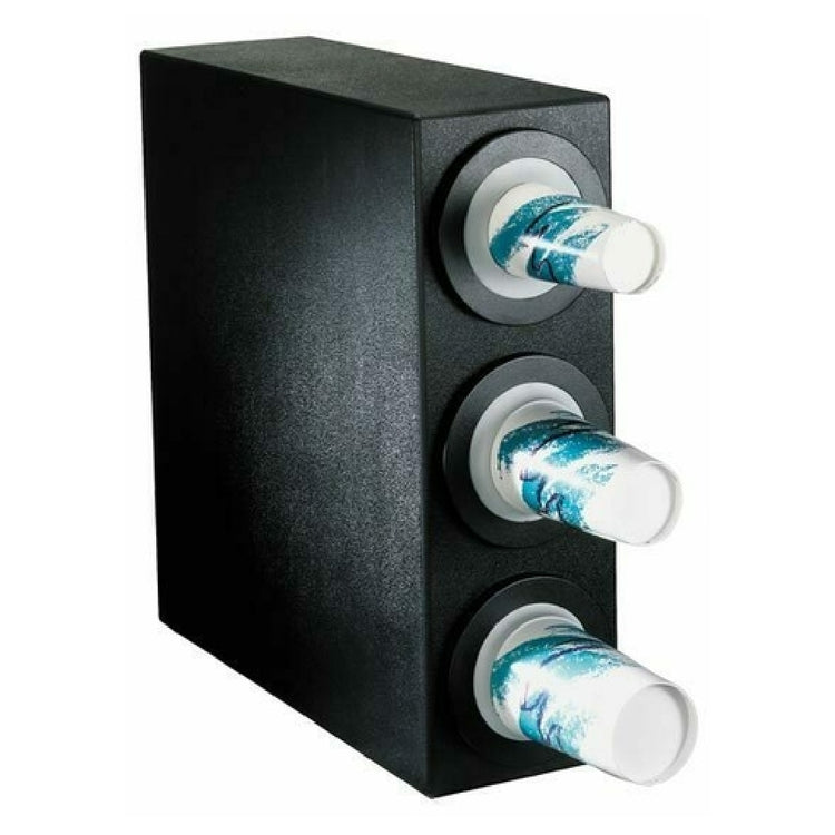 The Dispense Rite BFL-S-3BT Cup Dispensing Cabinet Adjustable (3) BFL-2F is a versatile solution designed to accommodate various cup sizes, ranging from 8 oz. to 44 oz., with a rim diameter between 3" and 4-1/2". This model features an adjustable mechanism, allowing for customization and ease of use across different settings. Constructed from black texture polystyrene, the cabinet offers durability and an aesthetically pleasing appearance. It includes three BFL-2F cup dispensers, ensuring ample capacity and organization. The cabinet's dimensions are 24-1/4"H x 8"W x 23"D, making it a compact yet efficient addition to any environment. The black bezels add a touch of sophistication and match seamlessly with the cabinet's overall design. Additionally, the NSF certification highlights its compliance with stringent public health and safety standards, making it suitable for a range of professional settings, from commercial kitchens to self-service stations. The Dispense Rite BFL-S-3BT Cup Dispensing Cabinet's combination of adaptability, sturdy construction, and certified quality positions it as a valuable asset for businesses looking to optimize their beverage service operations.