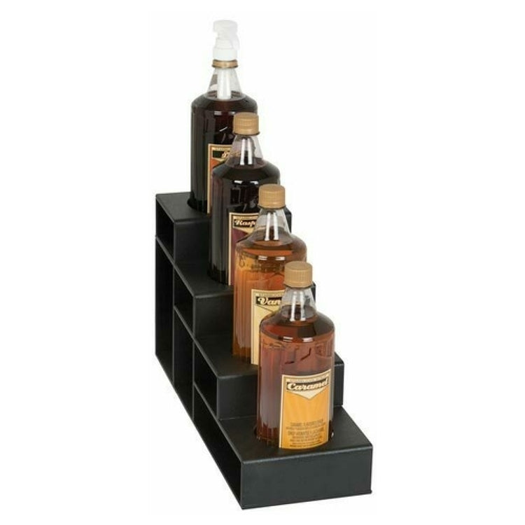 The Dispense Rite CTBH-4BT Bottle Organizer is a meticulously designed countertop solution measuring 9-1/8 inches in height, 6 inches in width, and 17 inches in depth, engineered to accommodate bottles with a maximum diameter of 3-3/8 inches. This organizer features a strategic design comprising four steps and four sections, providing an efficient method for sorting and accessing bottles, making it an essential tool in both commercial and residential settings where organization is paramount. Constructed from durable polystyrene material and presented in a sleek black finish, it ensures longevity and a modern aesthetic that blends seamlessly with various interior decors. The CTBH-4BT is particularly advantageous for spaces such as cafes, bars, restaurants, or home kitchens, where it supports streamlined operations by keeping frequently used bottles easily accessible and orderly. Its robust construction and thoughtful design contribute to enhanced workflow efficiency, minimizing the time spent on locating and retrieving bottles. This bottle organizer, with its precise dimensions and practical design, serves as a versatile asset in managing bottle storage across diverse environments, delivering a reliable and organized solution tailored to meet the complex needs of various market segments within the beverage and hospitality industry.