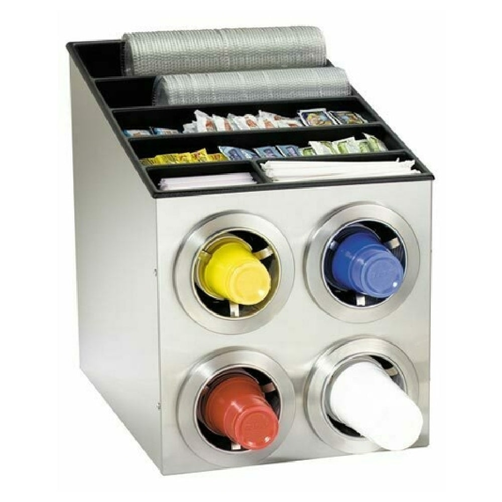 The Dispense Rite CTC-L-2X2SS Cup Dispensing Cabinet Adjustable (4) ADJ-2F is a versatile and essential solution for beverage service environments requiring efficient cup dispensing. This cabinet is constructed with a sturdy stainless steel housing, offering durability and a sleek appearance. It accommodates a wide range of cup sizes, from 8 oz. to 44 oz., with rim diameters ranging from 3" to 4-5/8", making it suitable for various beverage applications. The dimensions of the cabinet are 22-1/2" in height, 16-1/2" in width, and 22-3/4" in depth, providing a compact yet spacious storage solution. Additionally, the Dispense Rite CTC-L-2X2SS features an ABS top organizer designed to store lids, straws, and condiments neatly, optimizing countertop space and accessibility. With NSF-certified cup dispensers, this cabinet ensures compliance with rigorous health and safety standards. The adjustable feature of the (4) ADJ-2F cup dispensers allows for customization based on specific operational needs, catering to diverse market segments within the food and beverage industry. This product is an ideal choice for establishments looking to enhance their service efficiency and maintain organized, hygienic dispensing operations.