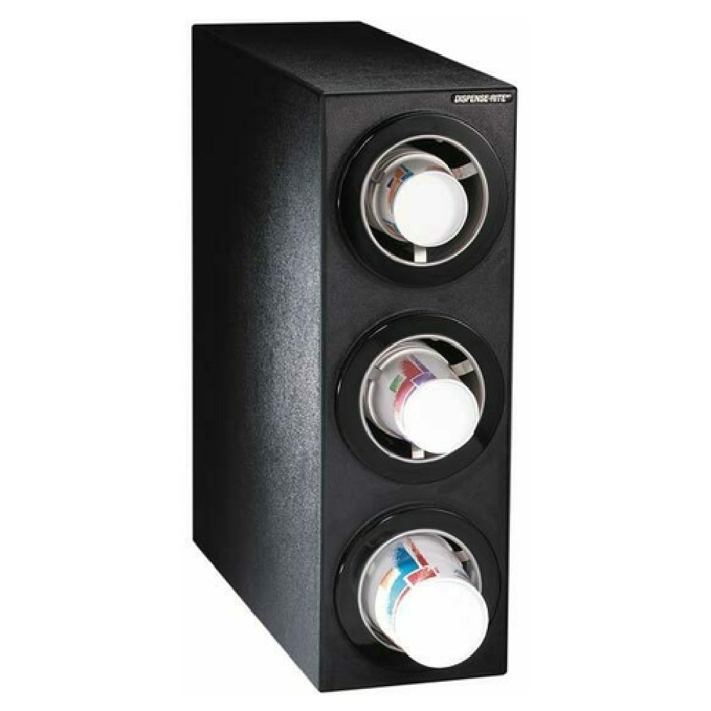 The Dispense Rite CTC-S-3BT Cup Dispensing Cabinet Adjustable (3) ADJ-2F is a versatile solution designed to meet the diverse needs of businesses in the food and beverage industry. This cabinet effectively accommodates a range of cup sizes, from 8 oz. to 44 oz., by supporting rim diameters between 3 inches and 4-5/8 inches. Its black texture polystyrene construction ensures durability, while the black bezels provide a sleek, modern appearance suitable for various commercial settings. Measuring 24-1/4 inches in height, 8 inches in width, and 23 inches in depth, this dispensing cabinet is compact yet functional, making it ideal for space-conscious environments. The inclusion of (3) ADJ-2F adjustable cup dispensers highlights its adaptability, allowing businesses to customize the unit to their specific dispensing needs. Certified by NSF, the Dispense Rite CTC-S-3BT not only meets rigorous public health standards but also guarantees dependable performance. Whether utilized in fast-food outlets, coffee shops, or self-service stations, this cup dispensing cabinet caters to a wide array of applications, providing an organized and efficient solution for cup management in high-traffic areas. Its thoughtful design and robust construction underscore its practicality and reliability in professional use.