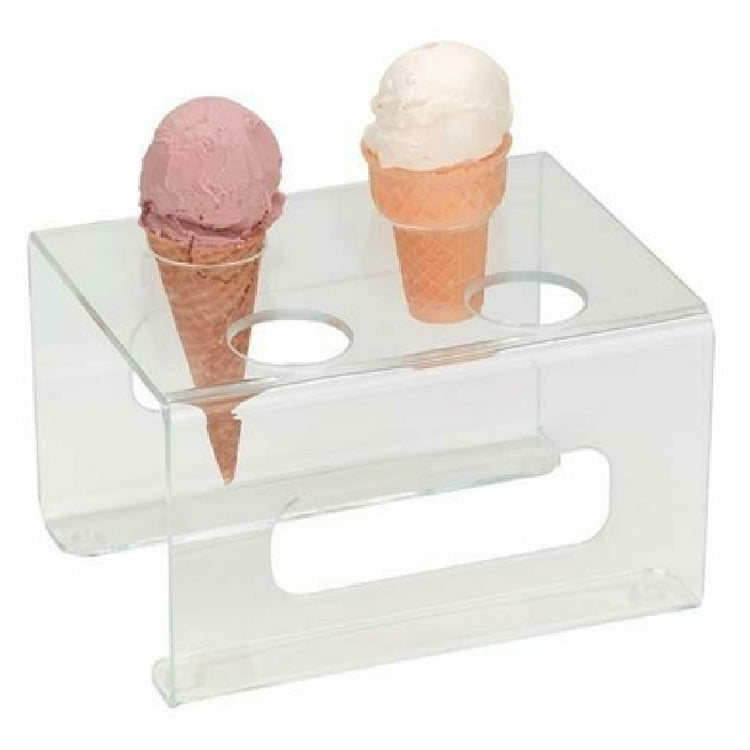 The Dispense-Rite CTCS-4C Ice Cream Cone Holder is an efficiently designed unit featuring four precisely measured 1-5/8" diameter holes, making it an essential tool for ice cream parlors and dessert establishments. With its dimensions at 5"H x 8"W x 6-1/4"D, this holder is compact yet spacious enough to securely accommodate a variety of cone sizes, catering to different customer preferences. Constructed from clear acrylic, it provides durability while allowing a full view of the cones, enhancing both functionality and aesthetic appeal. The CTCS-4C offers a practical solution for organized cone storage, ensuring they are easily accessible and neatly presented. Ideal for busy service environments, this holder complements the operational efficiency by minimizing space usage on countertops while maintaining a clean and organized display. Its sturdy build and precise hole sizing make it suitable for both high-volume commercial settings and smaller artisan ice cream shops, providing versatility and reliability. The clear acrylic material also ensures that it seamlessly integrates with various shop decors, making it a versatile choice across different market segments. This well-designed ice cream cone holder is an indispensable tool for any business aiming to provide a seamless and visually appealing service experience.