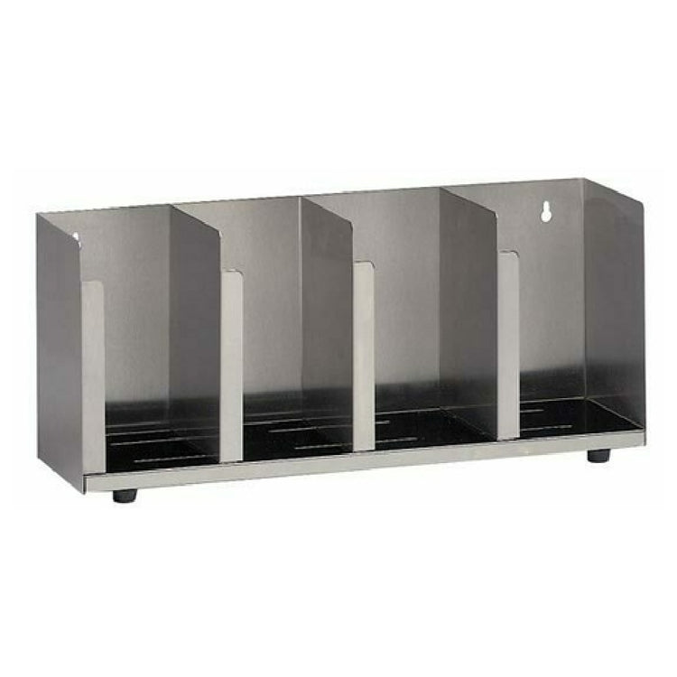 The Dispense Rite CTLD-19 Lid/Cup Organizer is a meticulously engineered solution tailored for efficient organization within any professional food service environment. This versatile organizer features four adjustable sections, making it adaptable to various configurations of lids and cups, ensuring it meets the diverse needs of different market segments. Measuring 8 inches high, 19-1/2 inches wide, and 5 inches deep, it is designed to optimize space while providing ample storage capacity. Constructed from high-quality stainless steel, the CTLD-19 offers durability and a sleek appearance, suitable for high-traffic areas. Its robust construction ensures longevity and reliability, essential for fast-paced settings like cafes, restaurants, and self-service stations. The adjustable sections provide flexibility, allowing users to customize the organizer to accommodate different sizes and types of lids and cups, enhancing operational efficiency. The stainless steel build not only contributes to its durability but also ensures easy cleaning and maintenance, aligning with the hygiene standards of the food service industry. By addressing the organizational needs of various establishments, the Dispense Rite CTLD-19 Lid/Cup Organizer stands out as a valuable asset, combining practicality with a professional-grade construction intended to streamline operations and optimize space usage.