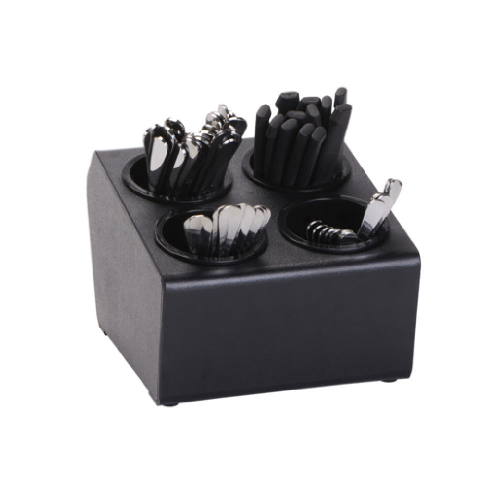The Dispense Rite CTSH-4BT Flatware Organizer Countertop with (4) compartments is a professional-grade solution designed for efficient organization and accessibility of flatware in various food service environments. Measuring 7-1/2 inches in height, 10-1/8 inches in width, and 13-3/4 inches in depth, this compact unit is ideal for countertops where space optimization is crucial. Constructed from durable polystyrene, the organizer is finished in a sleek black color that complements any modern kitchen or serving area decor. Each of the four compartments provides ample space for different types of flatware, making it highly versatile for both high-volume dining establishments and smaller cafes or bistros. Its sturdy construction ensures long-lasting use and resilience in busy settings, while the thoughtful design supports quick and easy access to utensils, enhancing service efficiency. The Dispense Rite CTSH-4BT is an essential organizational tool for restaurant operators aiming to maintain a tidy and orderly eating area, ultimately contributing to an improved dining experience for patrons. By addressing the needs of various market segments, this flatware organizer exemplifies practicality, durability, and aesthetic appeal in its class.