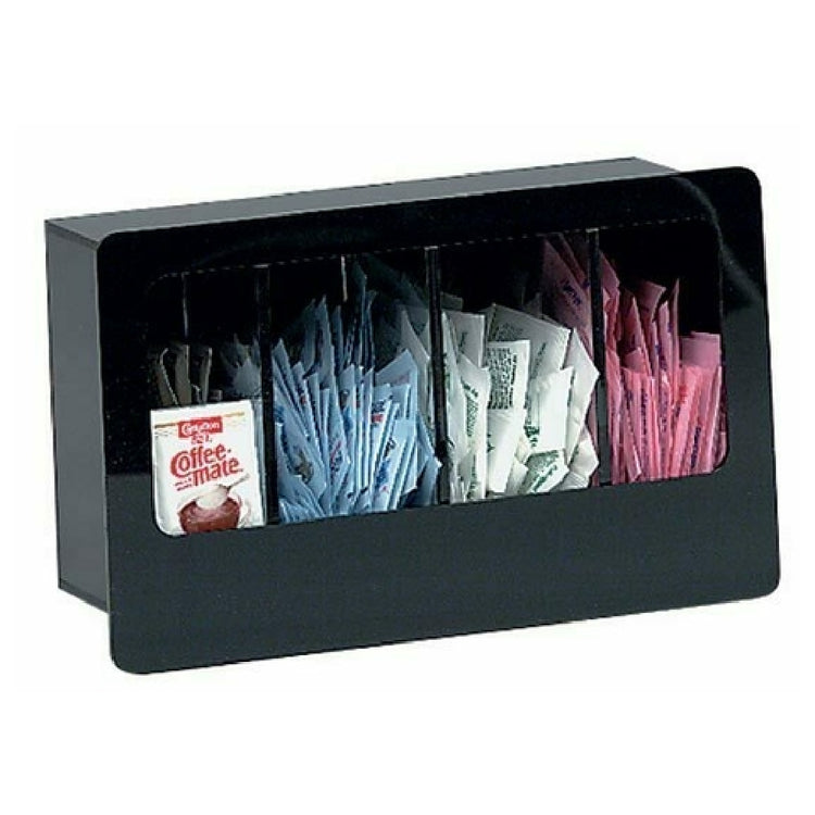 The Dispense Rite FMC-4 Condiment Dispenser Built-in 4 Section is a meticulously designed condiment organizer that seamlessly integrates into commercial food service environments. With dimensions of 7-1/4 inches in height, 12 inches in width, and 5-3/8 inches in depth, this dispenser provides an efficient solution for optimizing counter space while maintaining easy access to condiments. The unit requires a 6-1/4 inch by 11 inch cut-out for installation, ensuring a snug and secure fit in various settings. Crafted from durable acrylic and presented in a sleek black finish, the FMC-4 is both resilient and aesthetically pleasing, making it a versatile choice for any food service establishment. Its four-section design allows for organized storage and quick dispensing of condiments, catering to the needs of fast-paced environments such as restaurants, cafeterias, and cafes. The built-in design of the FMC-4 underscores its suitability for establishments seeking to enhance their service efficiency and operational flow. Whether in high-traffic areas or compact spaces, this dispenser's practical design and robust construction make it a valuable addition to any professional kitchen seeking to improve condiment management and accessibility.