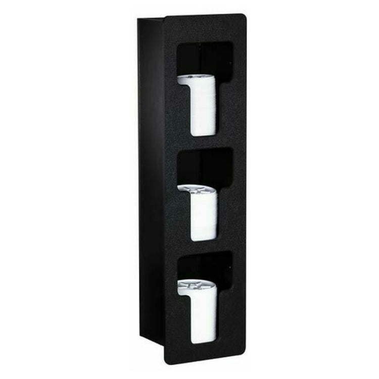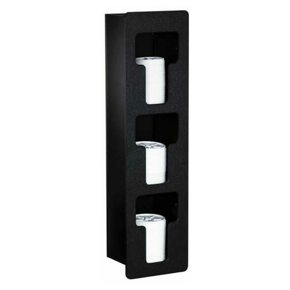 The Dispense Rite FMVL-3 Lid Dispenser Built-in 3 Section is a versatile and essential tool for any commercial or institutional setting requiring efficient lid dispensing solutions. This model features a built-in design with three sections, each carefully crafted to maximize organizational efficiency in high-traffic environments. Measuring 26 inches in height, 7 inches in width, and 5-1/2 inches in depth, the FMVL-3 provides a compact yet effective solution. The required cut-out dimensions are 24-5/8 inches by 5-5/8 inches, which ensures seamless integration into existing fixtures or counters. Constructed from durable polystyrene, this lid dispenser is finished in sleek black, adding a modern aesthetic to any service area. The FMVL-3 is particularly valuable in food service industries, cafeterias, and self-service beverage centers, where maintaining a tidy and accessible setup is crucial. By accommodating various lid sizes across its three sections, it is designed to streamline operations and enhance user convenience. The Dispense Rite FMVL-3 Lid Dispenser is engineered to uphold high standards of organization and functionality, making it an indispensable asset for businesses looking to optimize their service efficiency without sacrificing space or style.