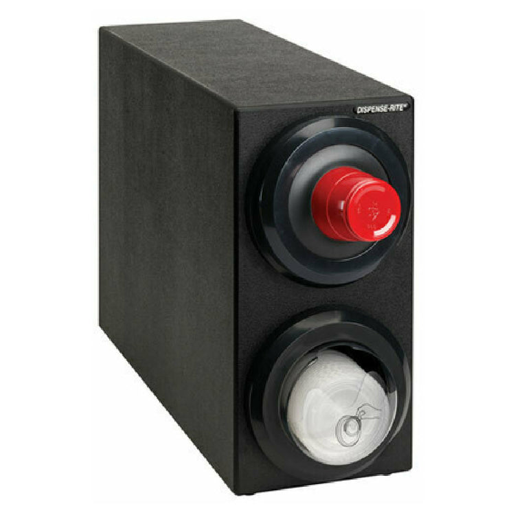 The Dispense Rite LID2-S2-2BT Cup And Lid Dispensing Cabinet is a highly functional countertop unit, measuring 24-1/4 inches in height, 8 inches in width, and 23 inches in depth. This versatile dispensing cabinet is designed to accommodate a wide range of cup and lid sizes, supporting paper, plastic, or foam cups and lids ranging from 8 to 44 ounces, with rim diameters between 3 inches and 4-1/2 inches. Featuring one SLR-2F and one SLR-LID-2 dispenser, it ensures organized and efficient dispensing of both cups and lids. The cup and lid dispensers are made from durable ABS plastic, providing reliability and longevity in high-traffic environments. The cabinet itself is constructed from black polystyrene, offering a sleek and professional appearance. Suitable for various segments within the food service and hospitality industries, this dispensing cabinet is ideal for cafes, fast food establishments, and self-service beverage stations. It is NSF certified, guaranteeing that it meets strict standards for public health protection. The Dispense Rite LID2-S2-2BT Cup And Lid Dispensing Cabinet is a practical and reliable solution for efficient beverage service, combining durability and adaptability to meet diverse industry needs.
