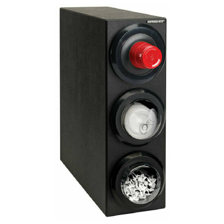 The Dispense Rite LID2-S2-3BT Cup and Lid Dispensing Cabinet is a compact and efficient countertop solution measuring 24-1/4"H x 8"W x 23"D, designed to streamline beverage service in various settings. This versatile unit is equipped with an SLR-2F, SLR-LID-2, and SLR-STRAW-2, allowing it to accommodate cups and lids ranging from 8 to 44 oz., with a rim diameter between 3" and 4-1/2". The inclusion of straw storage further enhances its functionality, making it an ideal choice for busy cafes, restaurants, and self-service stations. Constructed with durable ABS plastic cup and lid dispensers, housed within a sleek black polystyrene cabinet, it ensures long-lasting performance and aesthetic appeal. The NSF-certified cup dispensers highlight its compliance with health and safety standards, making it a reliable option for professional food service environments. This dispensing cabinet is crafted to optimize space and improve workflow efficiency, catering to the diverse needs of the food and beverage industry by offering a practical solution for organizing and dispensing cups, lids, and straws with ease.