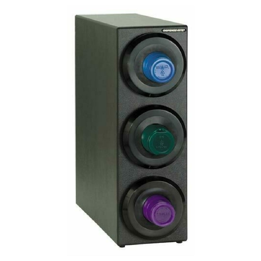 The Dispense Rite SLR-S-3BT Cup Dispensing Cabinet is a meticulously engineered solution designed for efficient cup storage and dispensing, catering to a wide range of industry needs. Standing at 24-1/4 inches in height, with a width of 8 inches and a depth of 23 inches, this cabinet is compact yet spacious enough to accommodate a variety of cup sizes. It features an interchangeable gasket system which ensures a flexible and customizable fit for different cup types. The cabinet houses three SLR-2 dispensers, capable of holding paper, plastic, and foam cups ranging from 8 to 44 ounces, specifically with rim diameters between 3 and 4-1/2 inches. This versatility makes it suitable for businesses that require quick and easy access to multiple cup sizes. Constructed from durable black polystyrene, this cabinet not only offers a sleek appearance but also provides long-lasting resilience in high-demand environments. Additionally, the NSF certification guarantees that the cup dispensers meet stringent health and safety standards, making them an ideal choice for food service establishments. Overall, the Dispense Rite SLR-S-3BT Cup Dispensing Cabinet stands out as a reliable and efficient choice for any setting that requires organized and accessible cup dispensing.