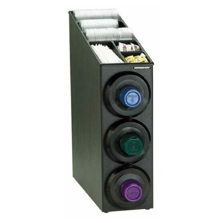 The Dispense Rite SLR-SL-3BT Cup Dispensing Cabinet is a versatile unit designed for efficient beverage service management. Measuring 29-1/4"H x 8-1/2"W x 24"D, this cabinet is engineered to accommodate a wide range of cup sizes, from 8 to 44 oz., with rim diameters ranging between 3" and 4-1/2". Its standout feature is the inclusion of three interchangeable SLR-2 gaskets, allowing for seamless adjustment to various cup types, including paper, plastic, and foam. The ABS plastic top is thoughtfully designed to provide additional storage for lids, straws, stir-sticks, and condiment packets, enhancing convenience for users. Constructed from durable black polystyrene, this cabinet promises longevity and resilience in high-traffic environments. The NSF certification of the cup dispensers underscores its adherence to rigorous public health standards, making it a reliable choice for businesses prioritizing sanitation and safety. This cabinet serves as an essential asset for fast-paced eateries, cafes, and beverage stations, offering both functionality and space efficiency. With its practical design and robust construction, the Dispense Rite SLR-SL-3BT Cup Dispensing Cabinet is an invaluable solution for establishments seeking to streamline their beverage service operations.