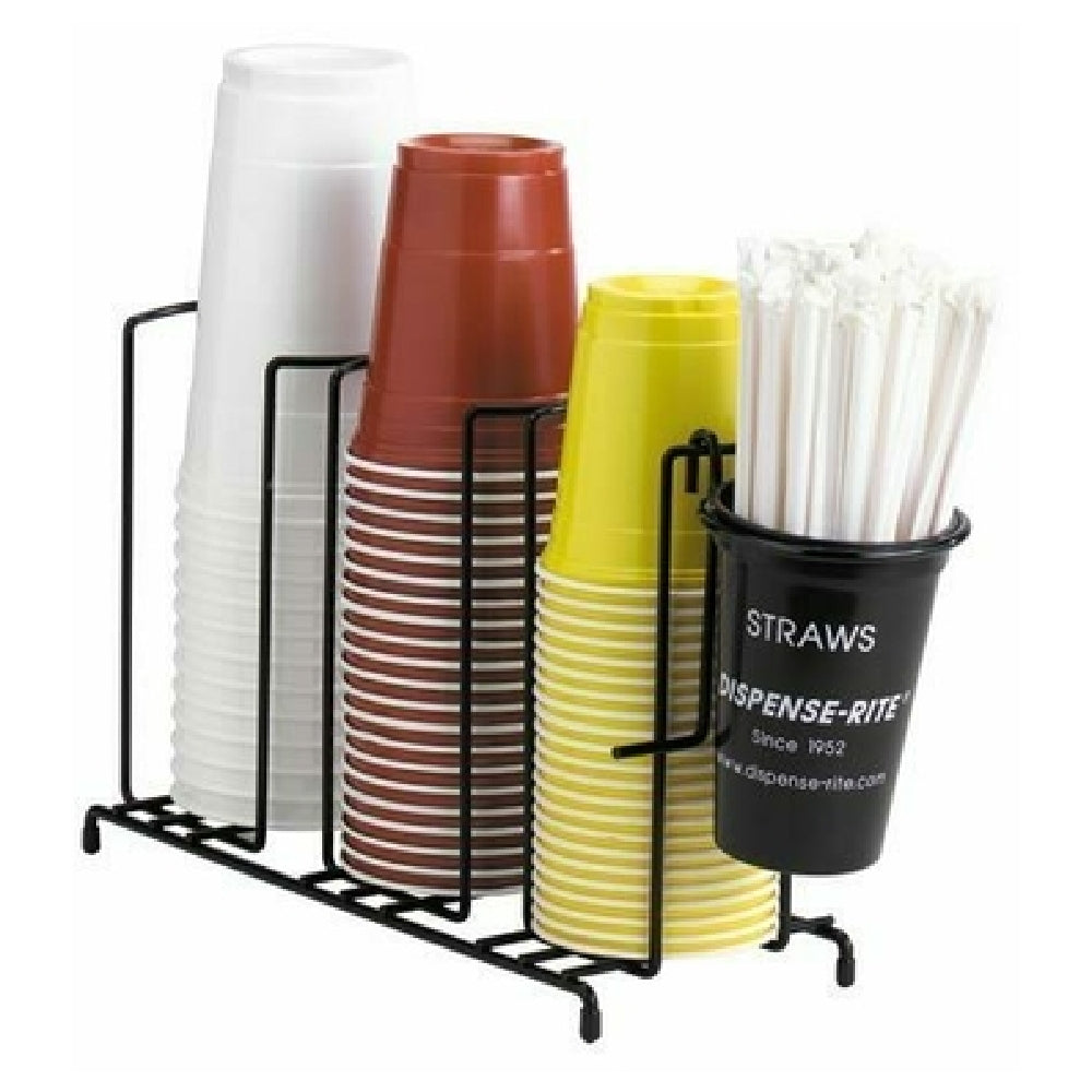 The Dispense Rite WR-3 Lid/Cup Organizer Wire Rack 3 Section is an efficient storage solution designed for streamlined organization in food service environments. This versatile wire rack features three distinct sections to accommodate various lid and cup sizes: one section at 3-1/2 inches, another at 4-1/4 inches, and a third at 5 inches. With dimensions of 8-1/2 inches in height, 14-1/2 inches in width, and 5 inches in depth, this organizer is compact yet spacious enough to meet the demands of busy commercial settings. Its black finish offers a sleek and professional appearance, making it suitable for front-of-house use where aesthetics are important. The sturdy wire construction ensures durability and dependability, ideal for high-traffic areas where quick access to lids and cups is essential. This lid/cup organizer is particularly beneficial for restaurants, cafes, and self-service stations where efficiency and space optimization are crucial. Its practical design not only enhances workflow but also maintains a tidy and organized presentation, enabling staff and customers alike to easily select the necessary items. The Dispense Rite WR-3 is a reliable and functional choice for any establishment looking to enhance their beverage service setup.