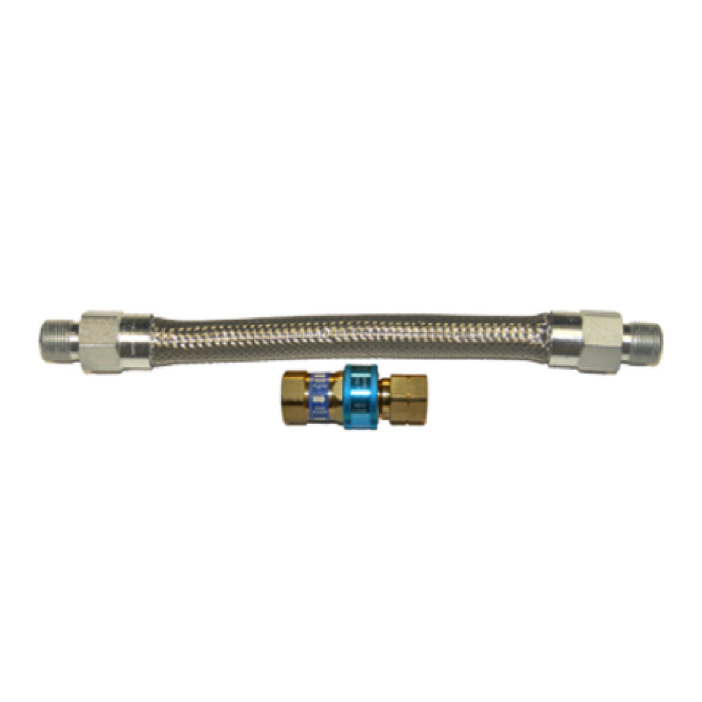 The Dormont 1650BQ36 Dormont Braided Gas Connector Hose Assembly is a high-quality gas connector designed with a 1/2 inch inside diameter that ensures efficient and safe gas flow in various applications. This 36-inch long assembly is meticulously constructed with a durable stainless steel braid, providing enhanced protection and longevity under demanding conditions. It comes equipped with a SnapFast® quick disconnect feature, allowing for swift and secure connections, which is particularly beneficial in settings that require frequent disconnection and reconnection of gas lines. Additionally, the inclusion of a 90-degree street elbow provides flexibility and ease of installation, accommodating complex piping layouts and spaces. The Dormont 1650BQ36 is backed by a limited lifetime warranty, highlighting the manufacturer's commitment to quality and customer satisfaction. This product is widely applicable across different segments of the industry, from residential to commercial kitchens, offering a reliable solution for gas connectivity needs. The technical prowess and robust design of the Dormont 1650BQ36 make it an essential component for professionals seeking a dependable gas connector that meets safety standards while ensuring efficient performance.