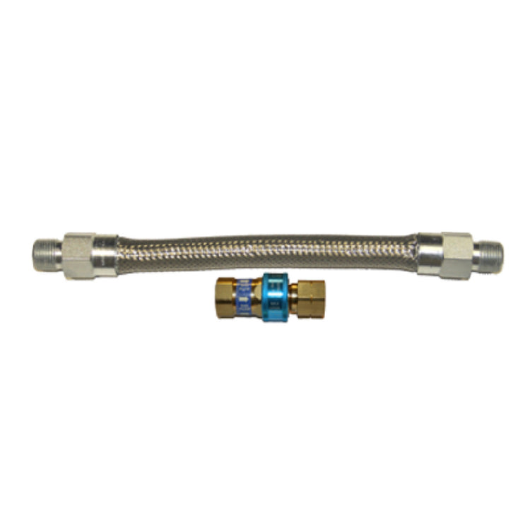 The Dormont 1675BQ48 Dormont Braided Gas Connector Hose Assembly - 3/4" Inside Dia. is a precision-engineered component designed to facilitate safe and efficient gas flow. With a 3/4-inch inside diameter, this assembly ensures optimal gas conveyance for various applications, making it indispensable for both residential and commercial kitchen setups. It measures 48 inches in length, providing substantial reach and flexibility, ideal for connecting gas lines in confined or complex spaces. The stainless steel braid covering enhances durability and resistance to wear, ensuring longevity and reliable performance. This assembly is equipped with one SnapFast® Quick Disconnect (QD) and a 90° street elbow, offering ease of installation and secure connections. Notably, the Dormont 1675BQ48 comes with a limited lifetime warranty, highlighting the manufacturer's confidence in the product's quality and durability. This gas connector hose assembly addresses the needs of various market segments, from small-scale food vendors to large commercial kitchens, by providing a reliable and robust solution for gas connectivity requirements. Its thoughtful design and superior materials make it a preferred choice for professionals seeking efficiency and safety in their gas connections.