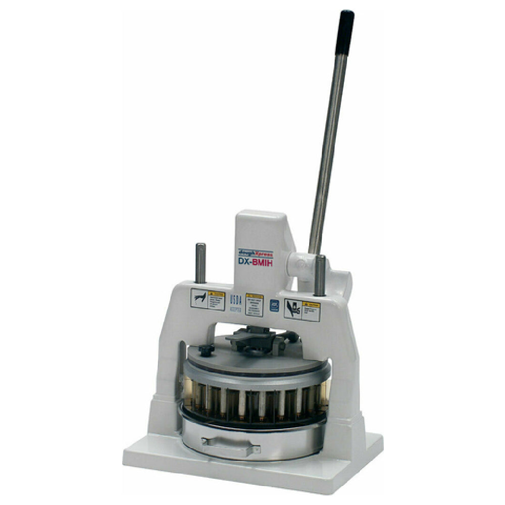 The DoughXpress DX-BMIH-36/18/9 (10048) BakeryXpress Dough Divider is a versatile manual dough dividing machine, tailored for precision and efficiency in bakery operations. It boasts a flexible design, capable of dividing dough into 36 pieces ranging from 1 oz. to 4 oz., 18 pieces from 2 oz. to 9 oz., or 9 pieces, offering a wide range of portion sizes to meet diverse baking needs. This equipment is UL® and USDA certified, highlighting its compliance with safety and sanitary standards crucial for food preparation environments. Manufactured in the USA, it embodies quality craftsmanship and reliability, making it a valuable addition to any bakery's production line. The DoughXpress DX-BMIH-36/18/9 is particularly beneficial for artisan bakeries, commercial-scale operations, and culinary institutions aiming to streamline their dough handling processes with precision and consistency. Its manual operation allows for straightforward use, minimizing the need for complex training and ensuring ease of integration into existing workflows. The versatility in portion sizes makes it suitable for producing a variety of baked goods, enhancing operational efficiency and product diversity. This dough divider represents a practical solution for bakers seeking to enhance their production capabilities and maintain high standards of output.