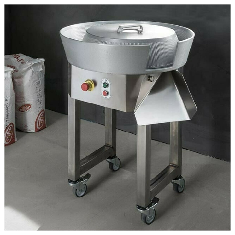 The DoughXpress DXP-DBR3L (10994) BakeryXpress Dough Ball Rounder, a versatile machine designed for various bakery environments, efficiently handles dough ball portions ranging from 2.5 to 42.3 ounces. With an impressive output capacity, it processes between 88 to 661 pounds per hour, making it a robust solution for both small and large-scale bakeries. Constructed from durable stainless steel and anodized aluminum, this machine ensures longevity and reliability in high-demand settings. Equipped with legs and casters, it offers mobility and stability, enhancing operational flexibility. The BakeryXpress Dough Ball Rounder operates at 370 watts and requires a 115v/60/1-ph electrical connection, drawing 7.0 amps, and is fitted with a NEMA 5-15P plug. Certified by cETLus and NSF, it meets rigorous safety and sanitation standards, assuring users of its quality and compliance. The DoughXpress DXP-DBR3L is designed to streamline the dough rounding process, making it an invaluable asset in increasing efficiency and production consistency across different segments of the baking industry. Its technical specifications and build quality make it suitable for a range of commercial applications, from artisanal bakeries to large food production facilities.