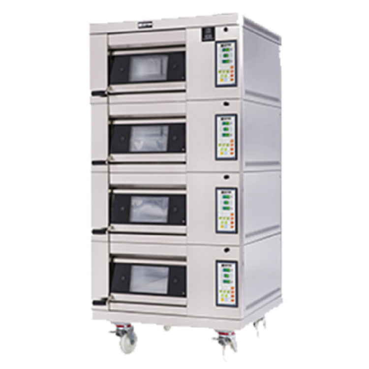 The Doyon 1T4_220/60/1 Artisan Stone Four Deck Oven - a standout piece of equipment in the world of baking. This electric oven is engineered for efficiency and precision, incorporating the Ecomode energy miser/governor technology to optimize energy consumption. Each of its four stone hearth bake decks has an 8-inch height, providing ample room for baking a variety of products, with a capacity of one pan per deck. The oven's end load design offers convenient access, and the programmable control for each deck allows bakers to fine-tune their baking parameters. With a maximum temperature of 600°F, it accommodates a wide range of baking needs. The independent upper and lower deck elements ensure even heat distribution, while the self-contained steam injection system in each deck enhances the baking process, especially for artisan bread. The oven is supported by heavy-duty legs and casters, facilitating mobility and stability. It meets the highest sanitation and safety standards, being ETL-Sanitation, cETLus, and CE certified, along with ISO compliance. This oven is an exceptional choice for artisan bakers seeking precise control and efficiency in their operations, making it a valuable asset in both small and large-scale bakery settings.