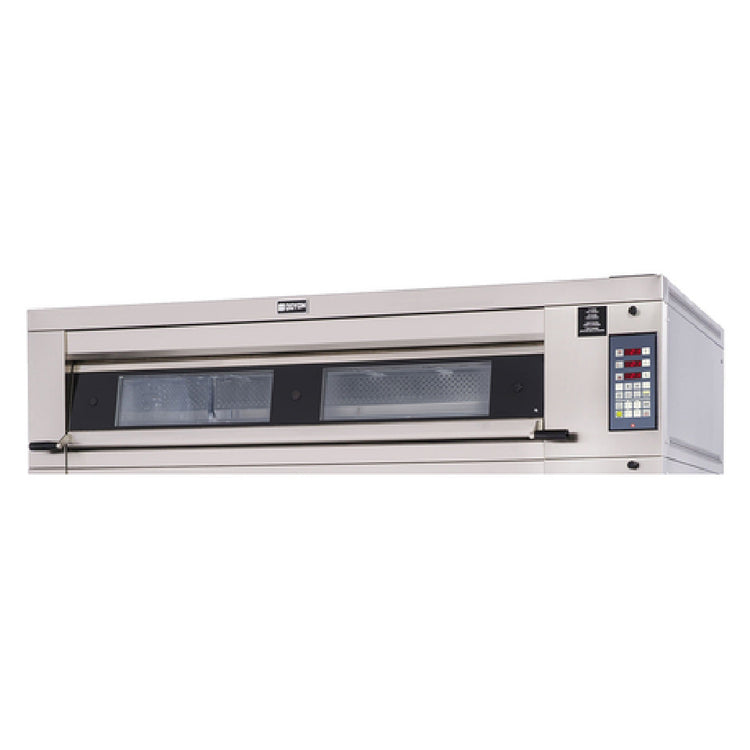 The Doyon 4T1_220/60/1 Artisan Stone Single Deck Oven Electric Ecomode Energy Miser/governor is a cutting-edge baking solution designed for efficiency and performance. This electric oven features an Artisan Stone single deck with a generous capacity to hold four pans per deck, accommodating varied baking requirements. Its stone hearth bake deck ensures even heat distribution for perfect results, while the side load design facilitates easy access. With a standard 8-inch deck height, it offers ample space for diverse baking needs. The oven boasts a maximum temperature of 600°F, supported by independent upper and lower deck elements for precise temperature control. Each deck is equipped with self-contained steam injection, enhancing baking quality and versatility. Programmable control per deck allows for customized baking settings, ensuring consistent results. The Doyon oven is designed with retractable doors for space-efficient operation and comes with heavy-duty legs and casters for easy mobility within commercial kitchens. It meets rigorous sanitation and safety standards, being ETL-Sanitation, NSF, CE, and ISO certified. This oven is ideal for artisan bakers seeking energy efficiency and superior baking performance, making it a valuable asset in the professional baking and food service industry.
